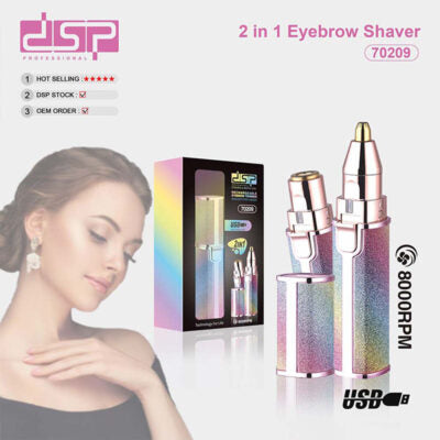 تتضمن مجموعة تشذيب الحواجب النسائية 2 في 1 أداة تشذيب شعر الحواجب والأنف عبر USB ومزيل شعر الجسم الذي يمكنك استخدامه لشعر الوجه والعناية بالوجه والذقن والشفة العليا والخدين.