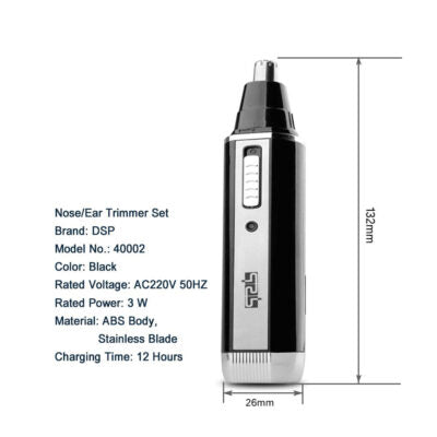 ماكينة تشذيب شعر الأنف والأذن القابلة لإعادة الشحن من دي إس بي، 3 في 1، ماكينة تشذيب شعر اللحية والحاجب، شفرة دوارة عالية السرعة، 3 وات (أسود)