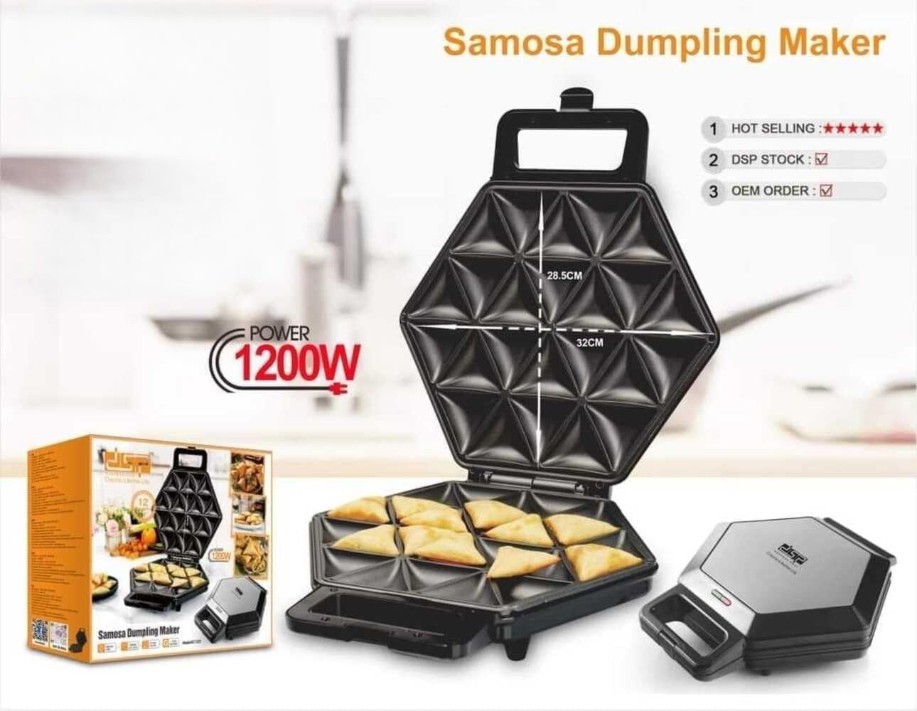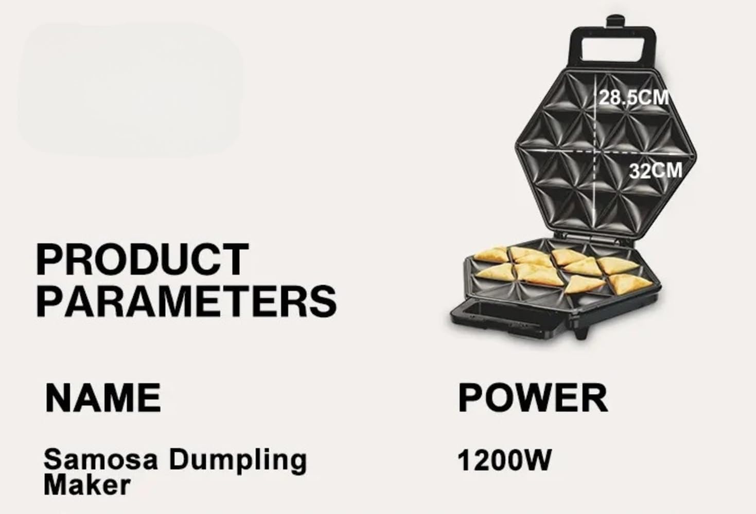 Make delicious samosas and dumplings with ease using our electric samosa dumpling maker. This efficient appliance features a non-stick cooking plate with 8 cavity molds for even baking. The powerful 1200W heating element ensures quick and consistent results, making it perfect for both home cooks and restaurant professionals.