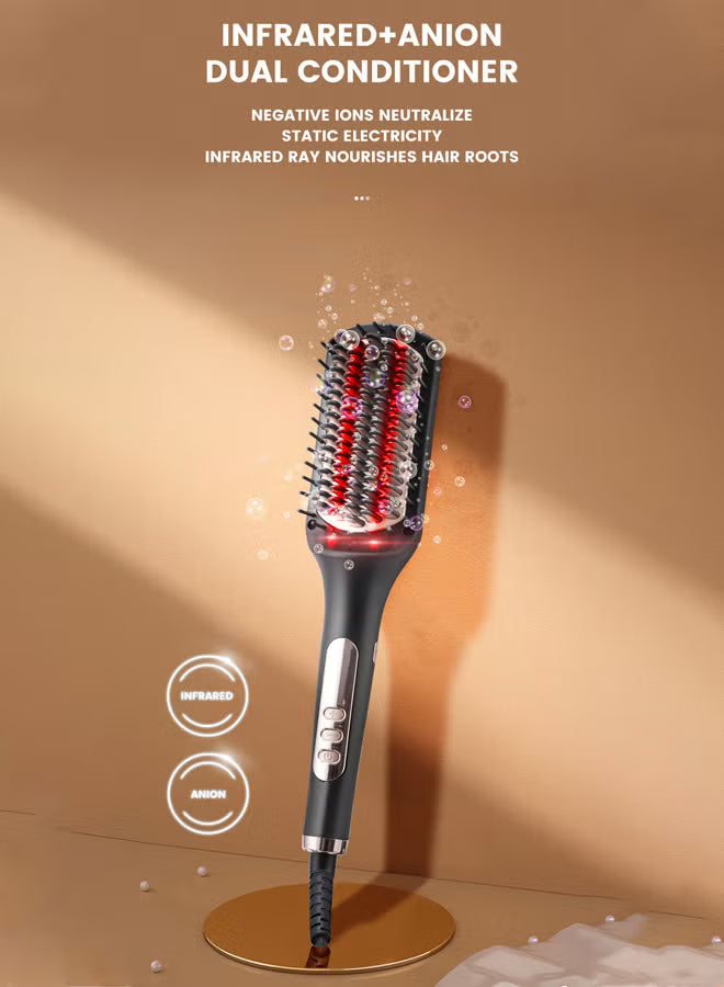 Hair Dryer & Straightening Brush,6 Temp Settings (270℉-450℉),Negative Ion Ceramic Straightener Brush for Women, 11009