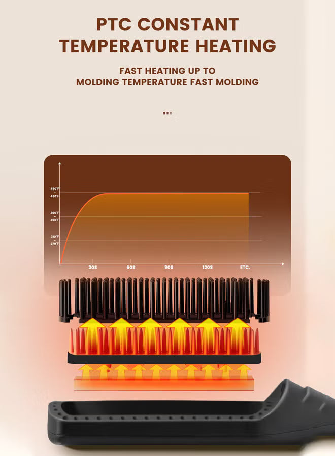 • 【6-Temp Precision & LCD Display for Custom Styling】Tailor heat to your hair type: 270°F (damaged), 350°F (medium), or 450°F (coarse). The hair comb’s LCD screen shows real-time settings, ensuring safe use for Arabic curls, sleek ponytails, or voluminous updos. Ideal for Ramadan prep or wedding styling!