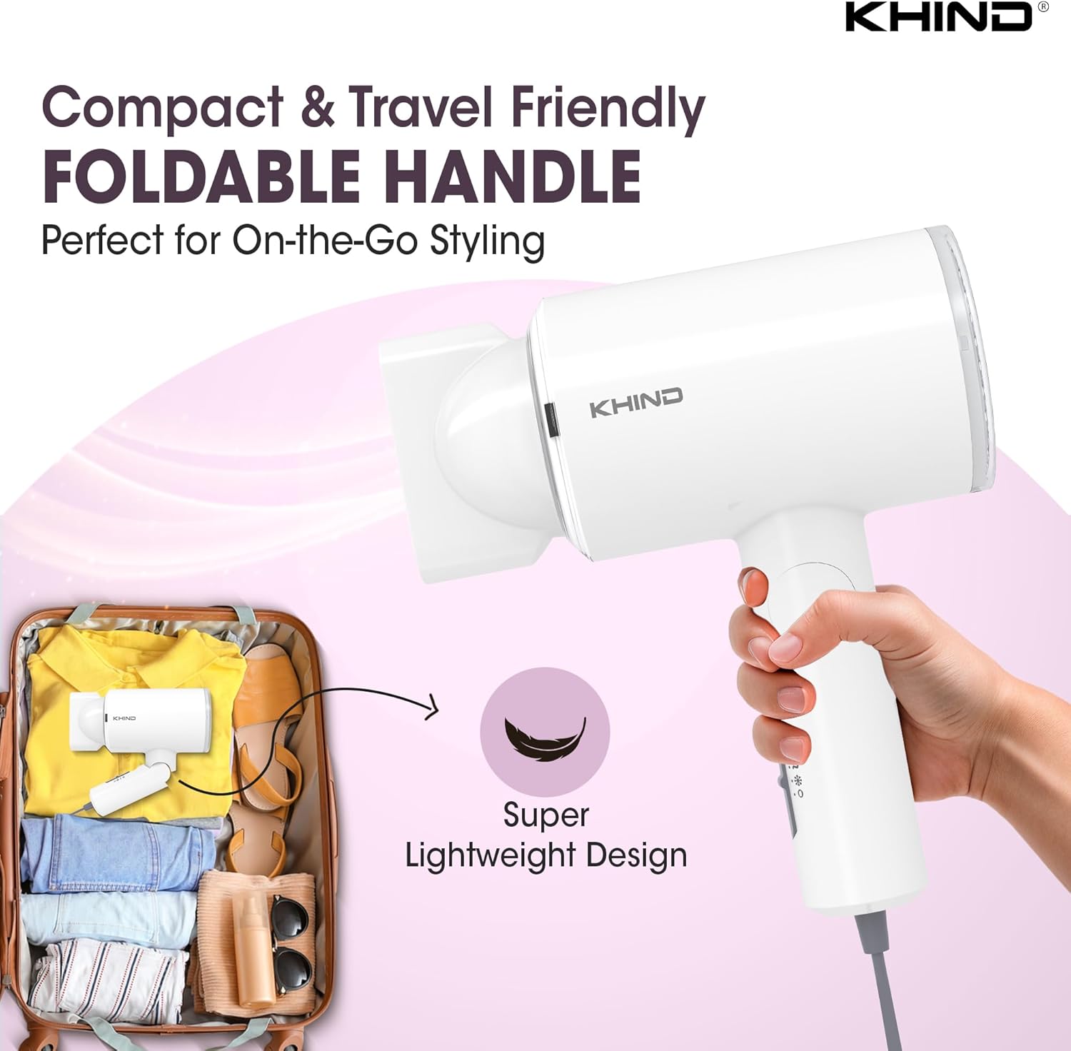 KHIND Compact Hair Dryer 1000W with 2 Heat & 1 Cool Shot Settings, Foldable Handle, Narrow Nozzle, Lightweight & Powerful, Easy to Use, 1.8m Cord for Easy Maneuvering, White – HD1002, 1 Year Warranty